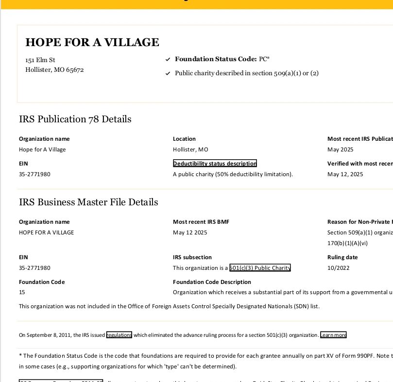 Mailing Address: 1415 West Jay Street Ozark, MO 65721 info@hopeforavillage.org